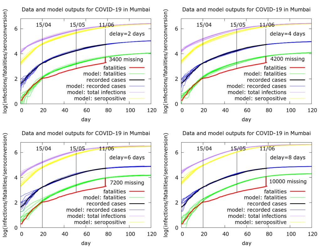 - Missing deaths. Here there are two sub-possibilities: (i) deaths of patients confirmed to be COVID+ are occurring, but are not being recorded; (ii) deaths are occurring of COVID-19 patients who have not been tested (pre- or post-mortem). Even in the latter scenario, these could be occurring either at home or in hospitals. It is noteworthy, in this context, that there are not (to my knowledge) widespread recent reports of data mismanagement or of deaths of people with comorbidities not being counted in Mumbai. The BMC claims that “all deaths, with co-morbid conditions and testing positive, are being considered as Covid-19 deaths“.