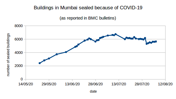 Mumbai’s COVID-19 epidemic could be the largest COVID-19 city epidemic in the world to date. By August 10th an estimated 5 to 6 million people in the city had been infected and there had been 6842 recorded COVID-19 deaths, 15% of the country’s total. Taking into account possible death undercounting, the true toll could be considerably greater. But how did the city get to this point?