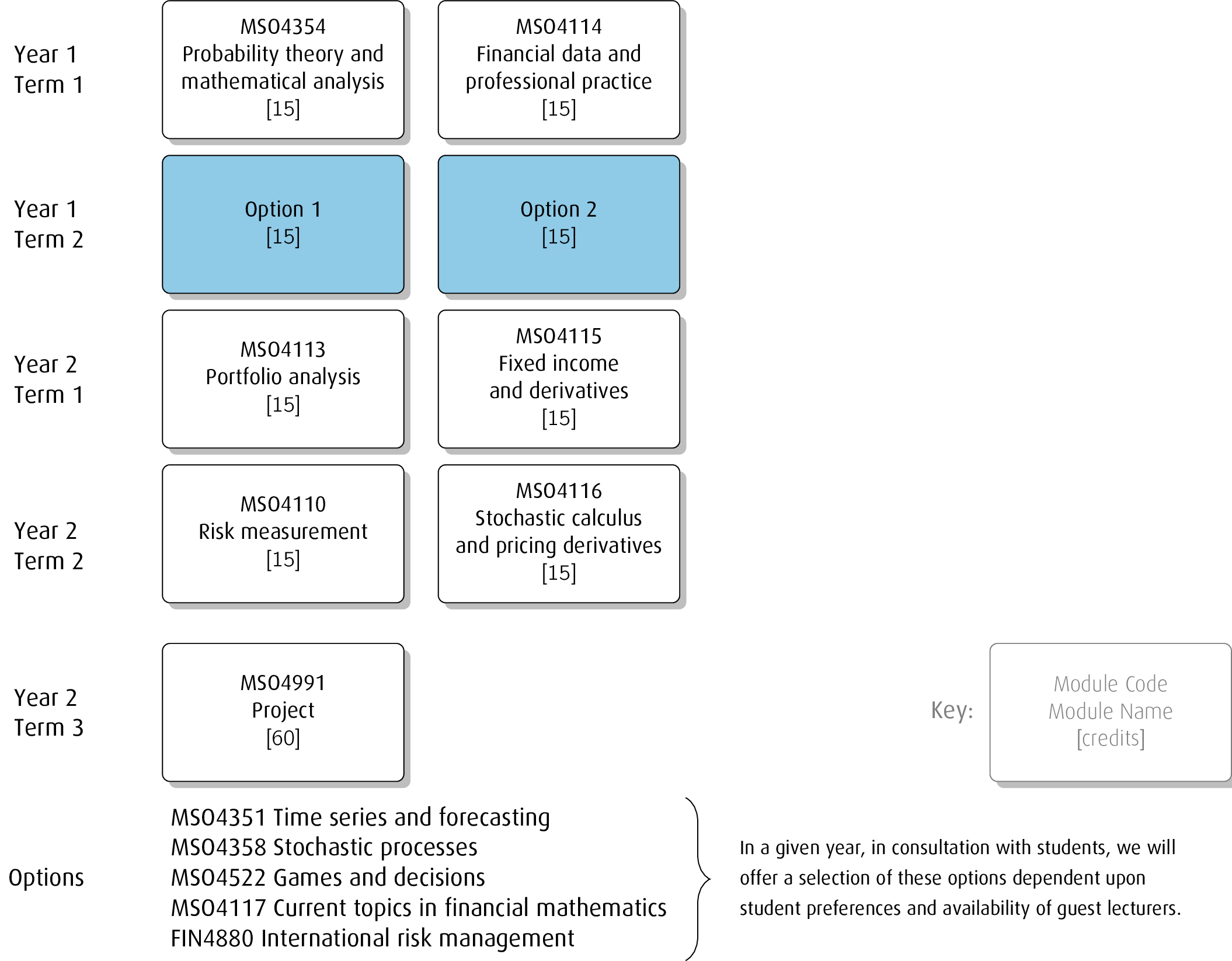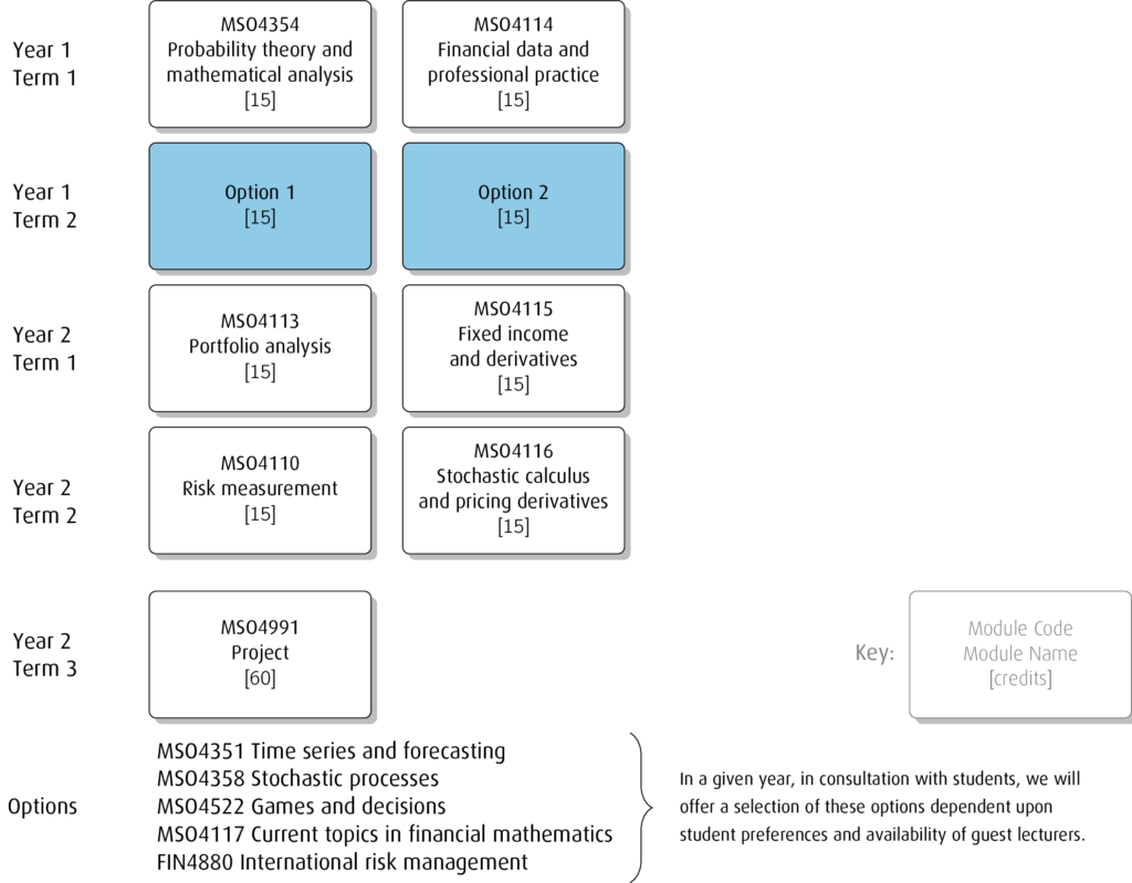 - Throughout the course you will gain access to academic and professional talks, training and networking events on campus and in the financial heart of London. In the optional module MSO4117 Current topics in financial mathematics you can write about these talks for credit towards your MSc/PGDip.