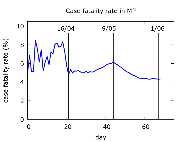 To conclude, the data does not conclusively tell us that significant numbers of fatalities are being missed in the official COVID-19 data from MP. It is possible that the drop in CFR is at least partly accounted for by increased case detection.