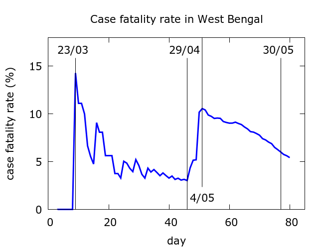 - CFR in Bengal fell dramatically in April primarily due to underreporting of fatalities in the official figures. There might also have been a marginal effect due to better case detection.