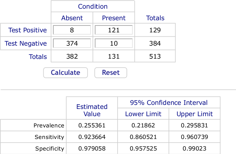 Put simply, if the figure of 0.73% prevalence was arrived at as above, then it is highly uncertain, being extremely sensitive to small errors in the presumed specificity of the test. As is generally the case with low prevalence, the accuracy with which we know test specificity is crucial: it is nearly impossible to infer a figure such as 0.73% with any degree of confidence unless we know the test specificity to high accuracy.