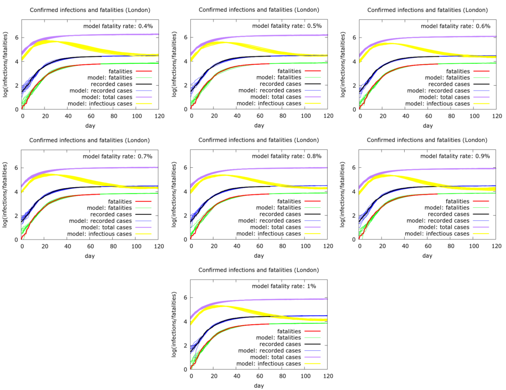 Model predictions. In the case of a fatality rate of 0.8%, in London: